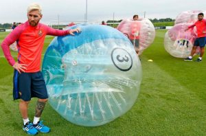 About two years ago, zorb suits were actually used in professional football training. You might have heard about the club that employed them – it was one F. C. Barcelona. You know, the club Messi plays for? There were